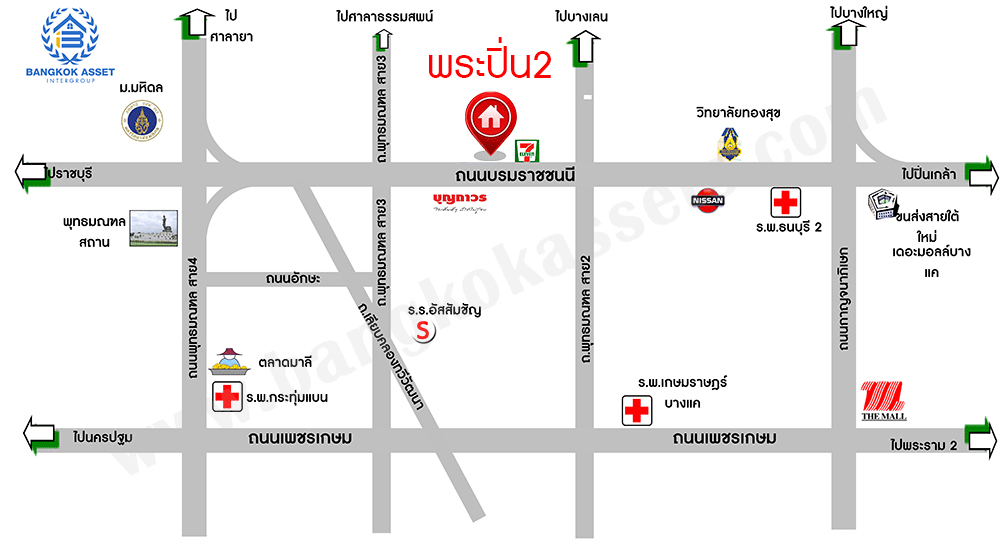 - ใกล้โรงเรียนเพลินพัฒนา, มหาวิทยาลัยมหิดล, มหาวิทยาลัยกรุงเทพธนบุรี