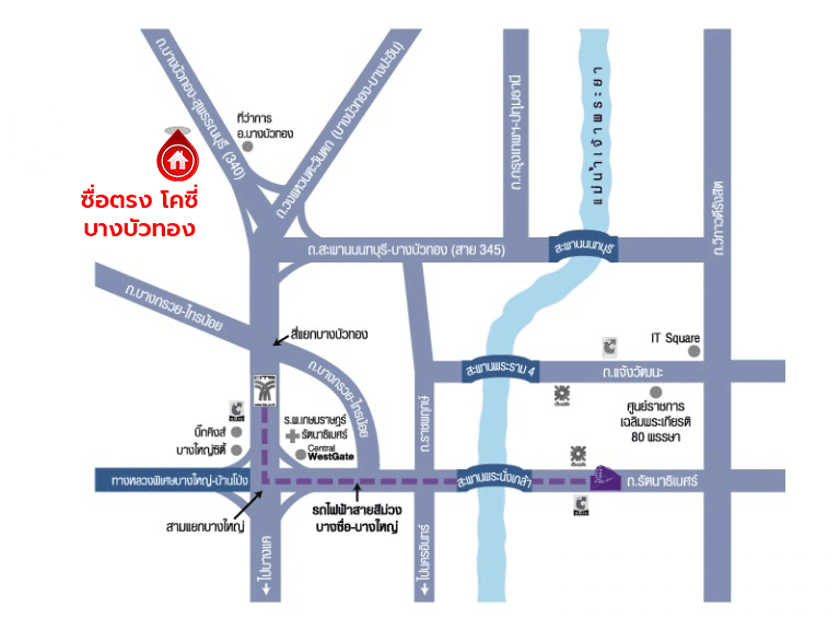 - ใกล้ห้างสรรพสินค้าเซ็นทรัลเวสต์เกต, อิเกีย บางใหญ่, โลตัส ไทรน้อย